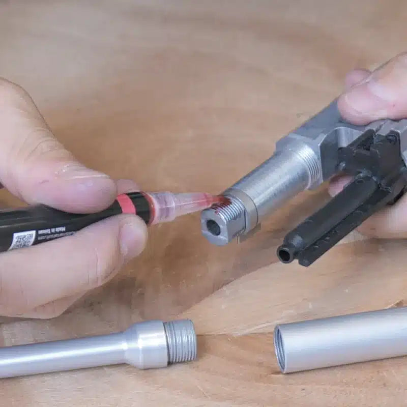 Vibration is the worst enemy of fasteners. Every airsoft gun, including springers will vibrate under operation. Therefore, it is very important to utilize thread lockers on fasteners which retain critical components and expensive accessories! Upon curing, the 4UANTUM LOCK thread adhesive leaves a gripping material on your fastener thread so it won’t come loose over time. The click pen packaging conveniently dispenses a perfectly sized drop for most airsoft gun fasteners.