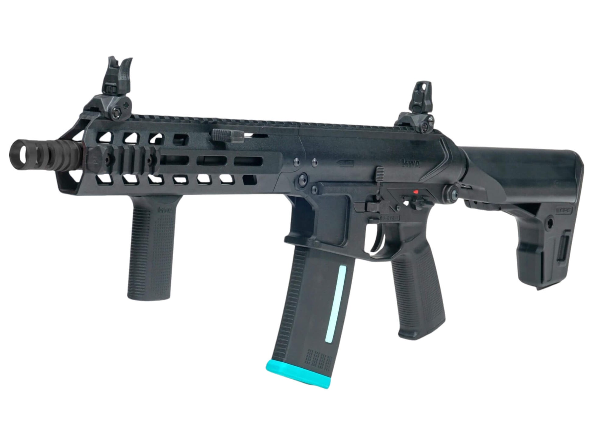 Beyond its captivating external features, the EVE-9 boasts a range of remarkable enhancements. From the PTS Enhance Polymer Sights to the ambidextrous fire controls and optional quick detach sockets, every aspect is meticulously designed to elevate your airsoft encounters. Internally, the EVE-9 is fortified with the proven 2.5+ VPS gearbox, aligning it with KWA's legacy of high-performance models. The integration of an aftermarket electronic trigger group unlocks unparalleled responsiveness, transforming the EVE-9 into an ultra-responsive and lightweight polymer AEG that embodies the quintessential KWA performance.
