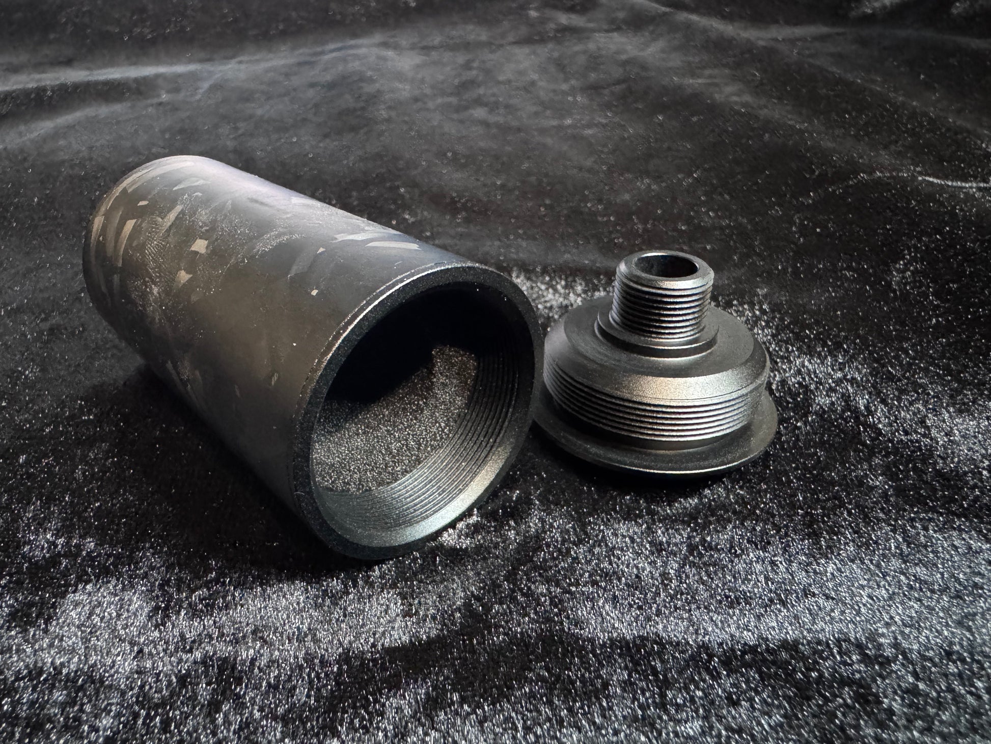 OG Carbon’s Forged Carbon Suppressors are constructed from roll-wrapped forged carbon fiber and finished with 7075 aerospace-grade aluminum endcaps, offering exceptional strength, minimal weight, and a refined, modern aesthetic.