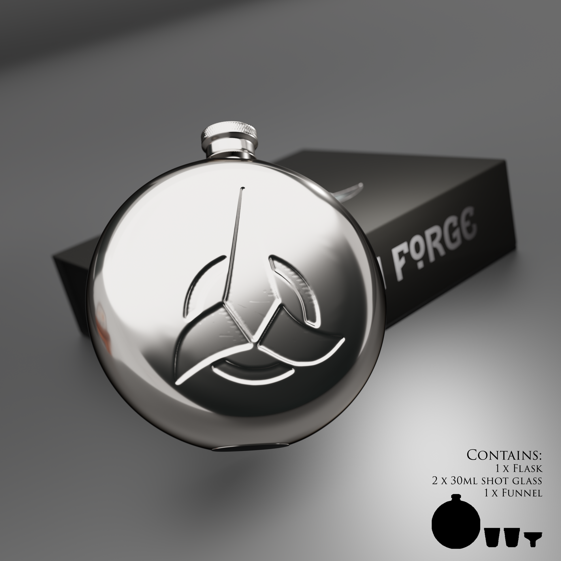 I'm proud to present the Official Star Trek® x Raven Forge Klingon Hip Flask Gift Set. Every detail, from the stunning Gift box design with an internal silver foil graphic to the mirror polished and debossed 10oz high-grade stainless steel flask has been meticulously designed by Raven Forge.