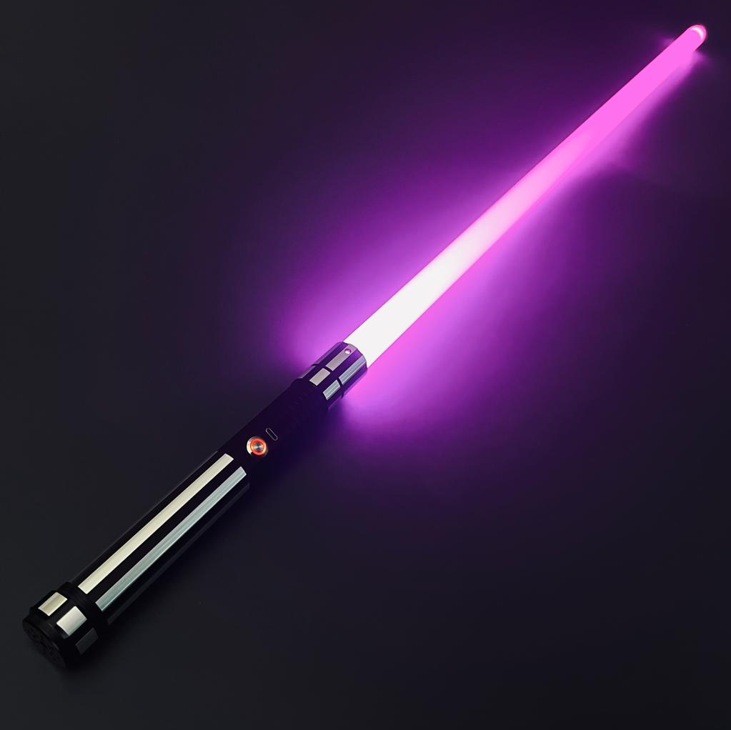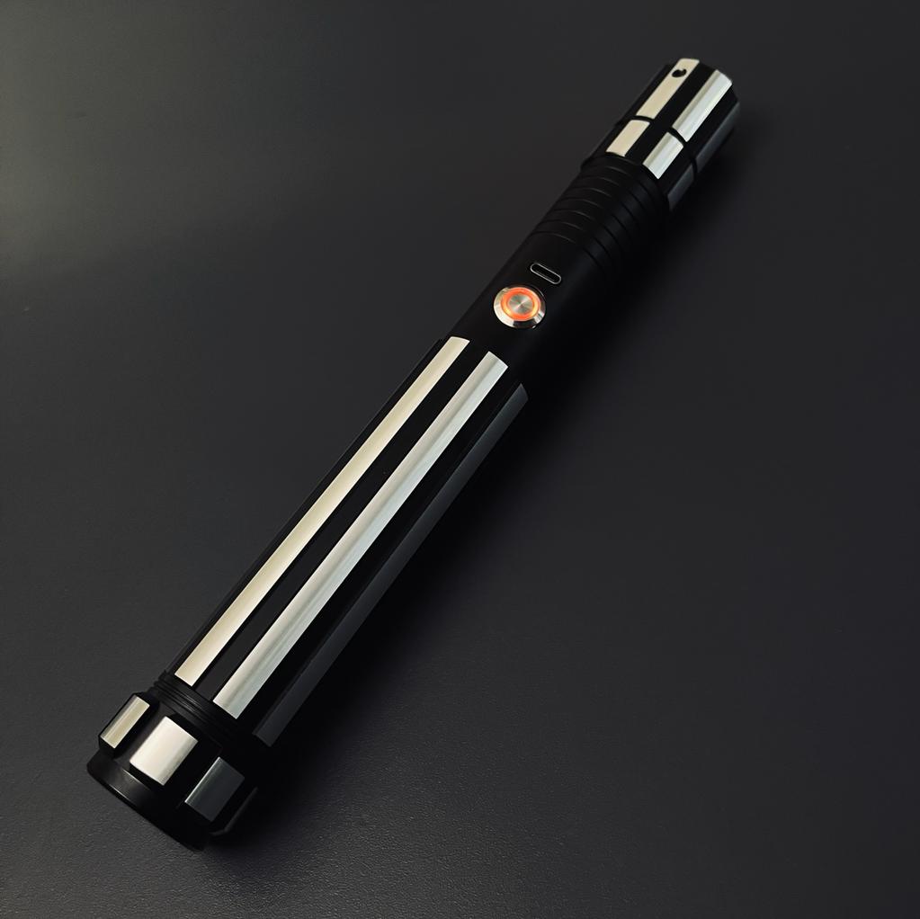 The hilt is formed of a lightweight aluminium metal, leading to a classic Full-Contact Duelling Blade. Our sabers come with 12 pre-installed soundboards, and are fully motioned control enabled. The sabers feature variable blade styles, including a large array of changeable colours so you can fully customise your kyber.